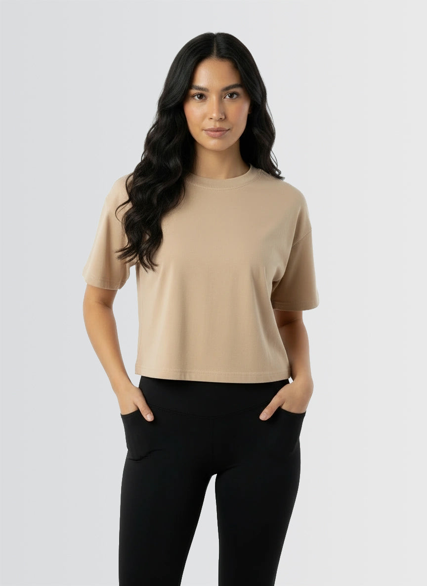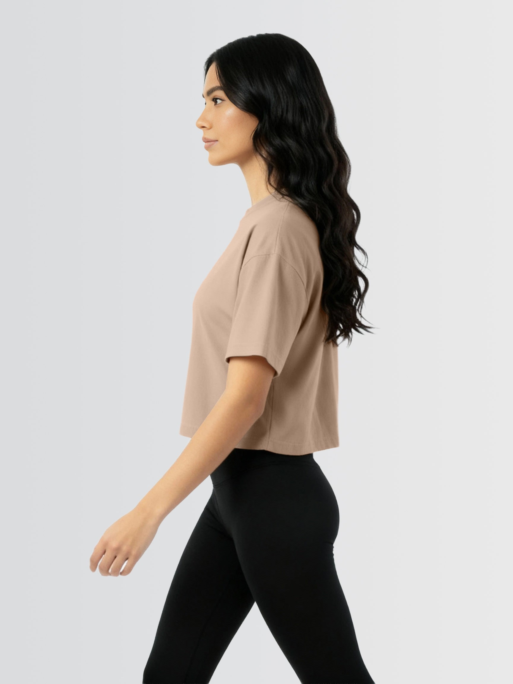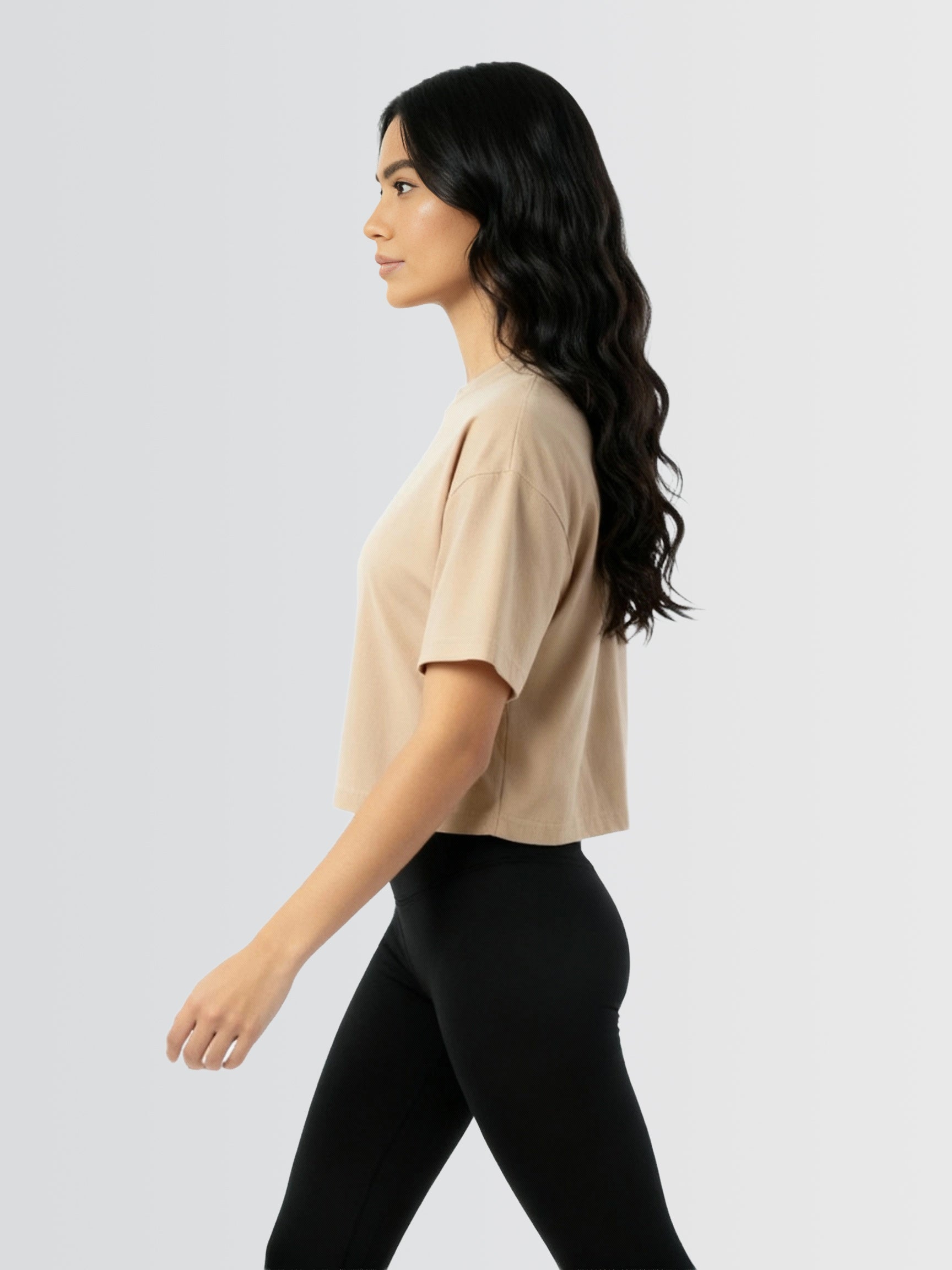 Lightweight and effortlessly modern, The Aura Crop radiates confidence through simplicity. The soft cotton drape makes it easy to wear; the word on the back reminds you that your energy lights every space you enter.