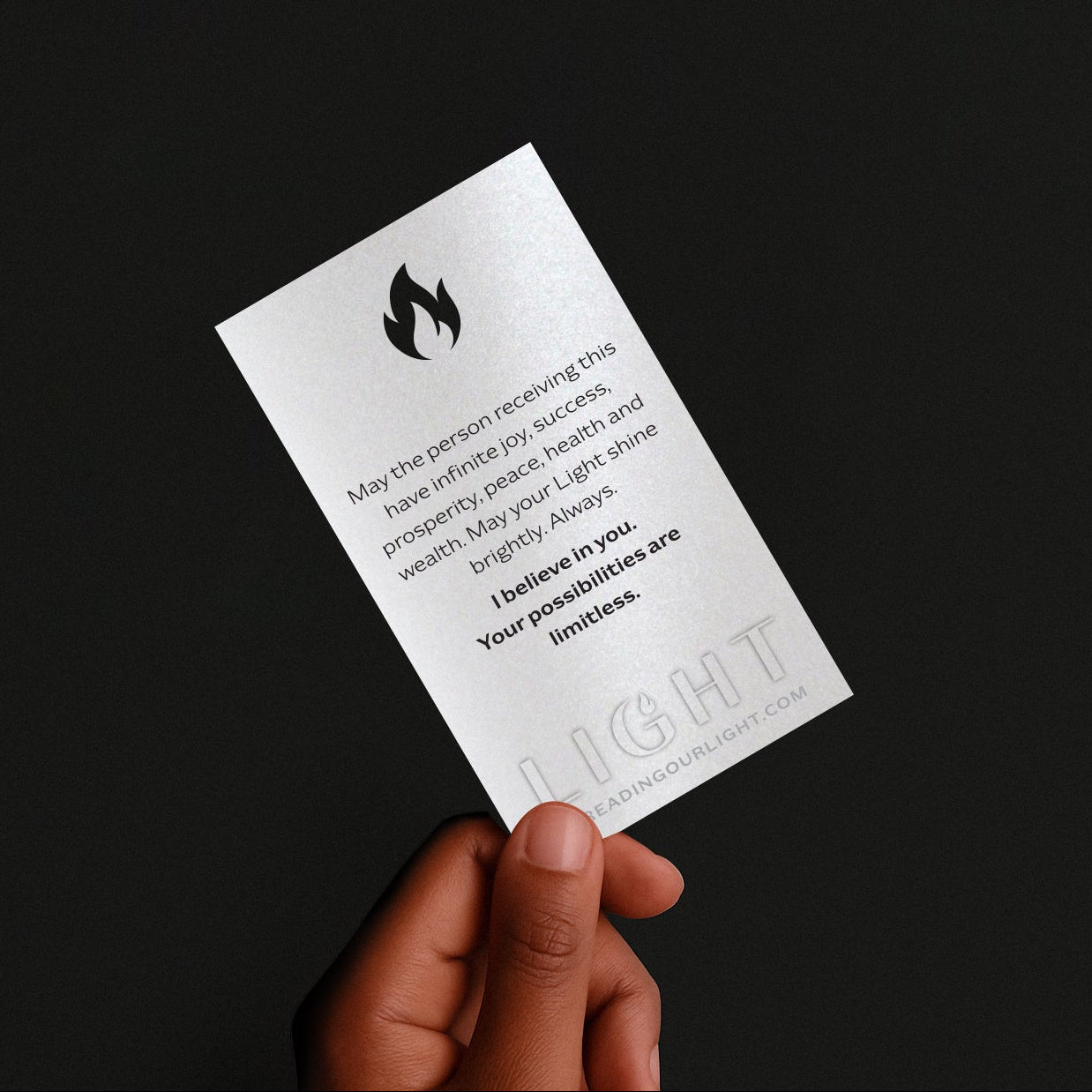 Create a message that reflects your values, intention, or moment. We’ll design custom Silver Light Cards with your wording, perfect for teams, events, or personal milestones.